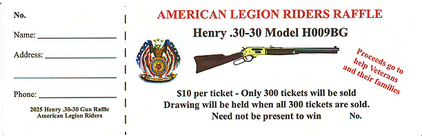 – American Legion Riders meet the 2nd Wednesday of each month @ 1800 hrs.